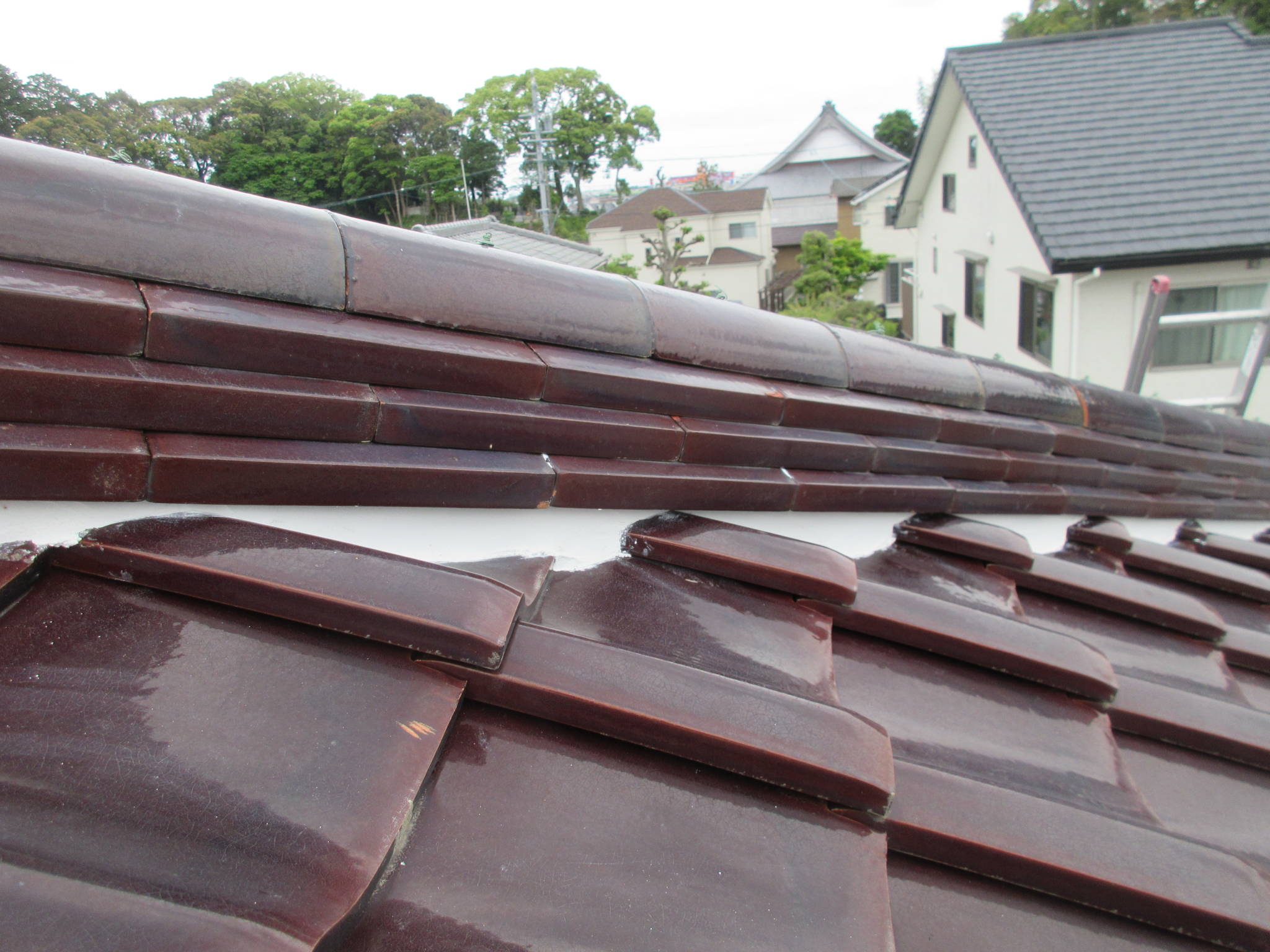 ▲ 隅棟の収まりも丁寧に施工。瓦の美しさが際立ちます。