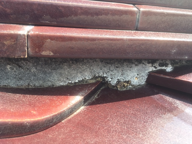 - 瓦の下の白い部分が黒ずんでいる、または剥がれている