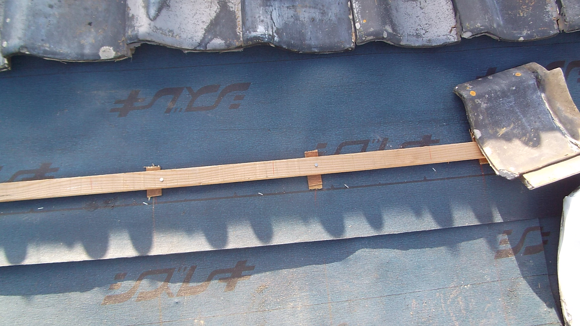 瓦を正しく固定するための桟木を新しく取り付け直します。これにより、瓦がズレにくくなります。また、土葺きの土もズレにくくする役割があります。