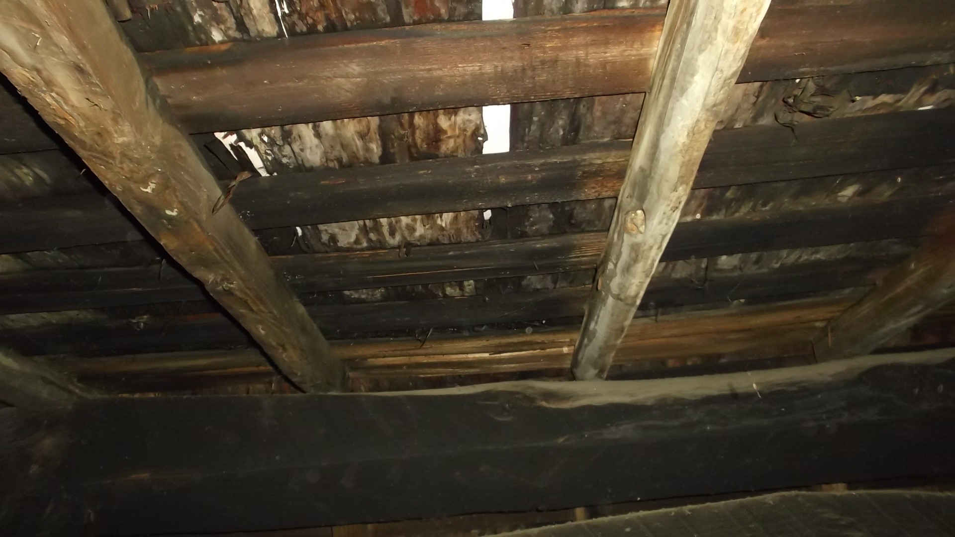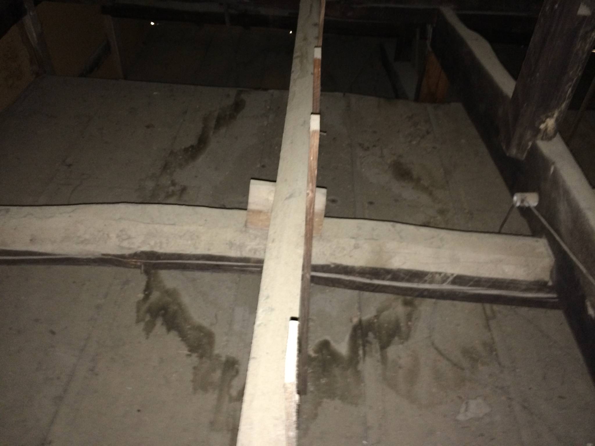 屋根裏を確認すると、長年の雨漏りによって木部が黒く変色し、一部には濡れ跡や腐食も見られました。