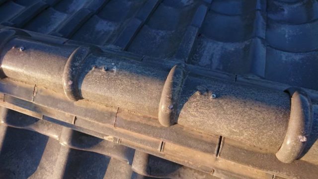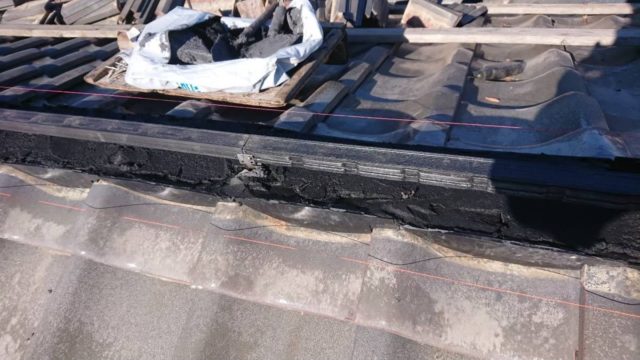 棟瓦(屋根の頂上部分)も積み直しを行い、棟芯木の交換・銅線でのしっかりした固定を実施しました。