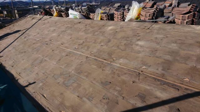 長年の使用で劣化していた古いルーフィング(防水シート)を撤去します。