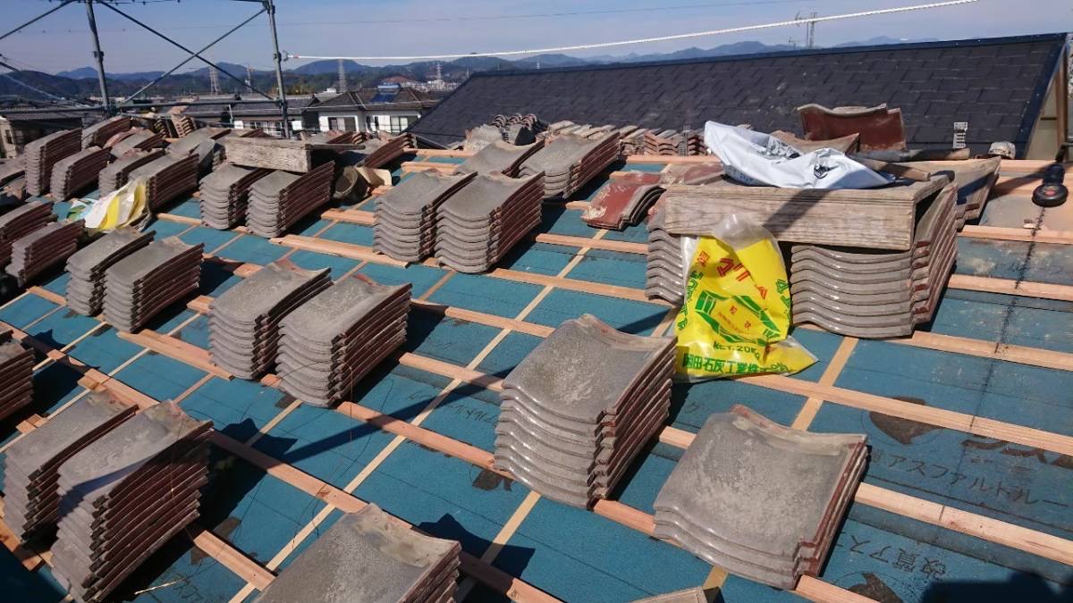 島田市のお宅にて、既存の瓦を再利用した屋根の葺き直し工事を行いました。