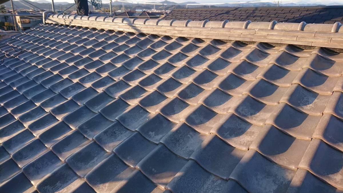 島田市のお宅にて、既存の瓦を再利用した屋根の葺き直し工事を行いました。