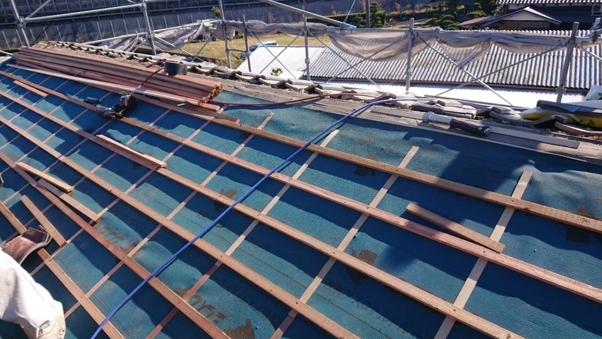 瓦をしっかり固定するための木材(瓦桟)を新しく設置します。