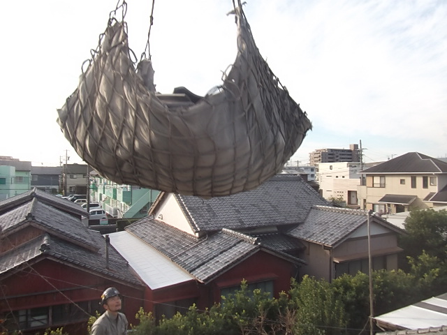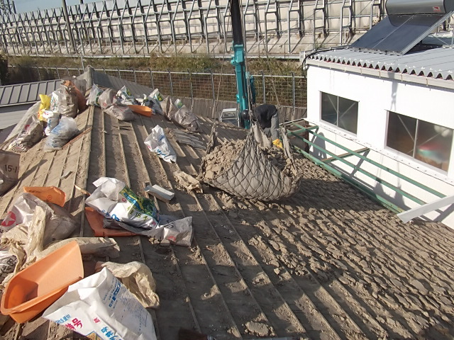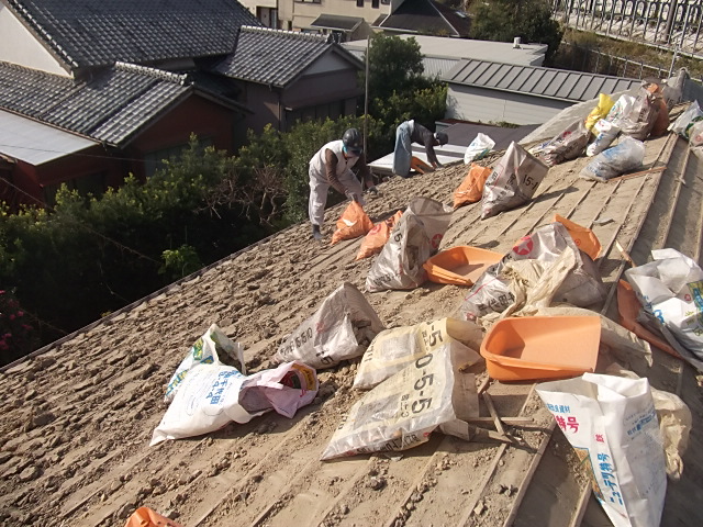瓦の下には土が厚く敷き詰められており、この土もすべて撤去します。