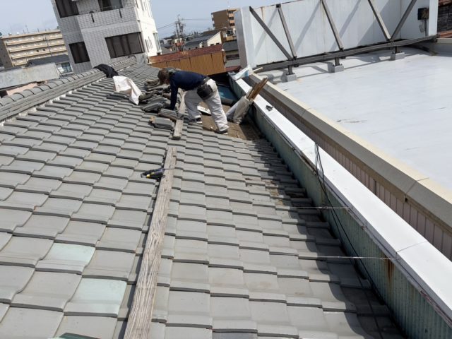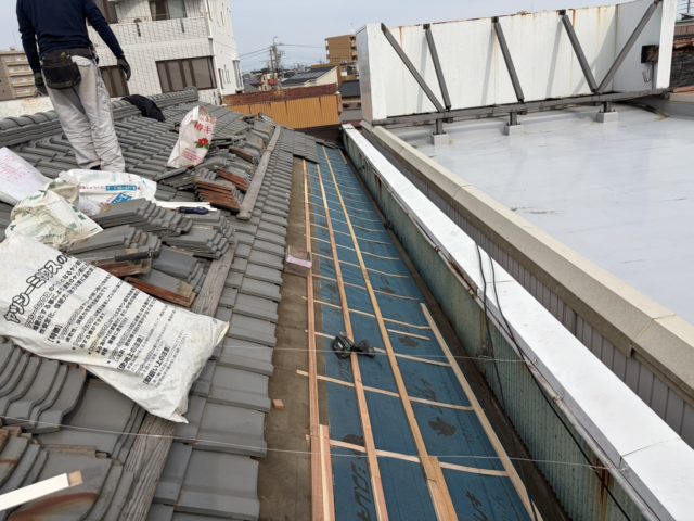 施工箇所周辺の瓦を丁寧に撤去し、下地を確認します。