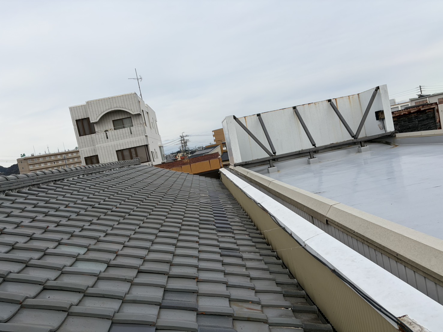 特に今回のような瓦屋根+板金屋根の取り合い部分は、雨漏りが非常に発生しやすいポイントです。