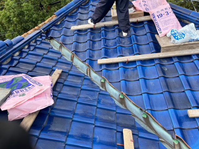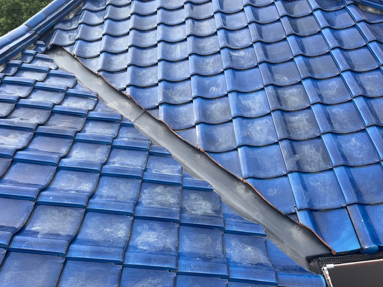 新しい谷板金の上に瓦を復旧し、雨仕舞(あまじまい)をしっかり行いました。