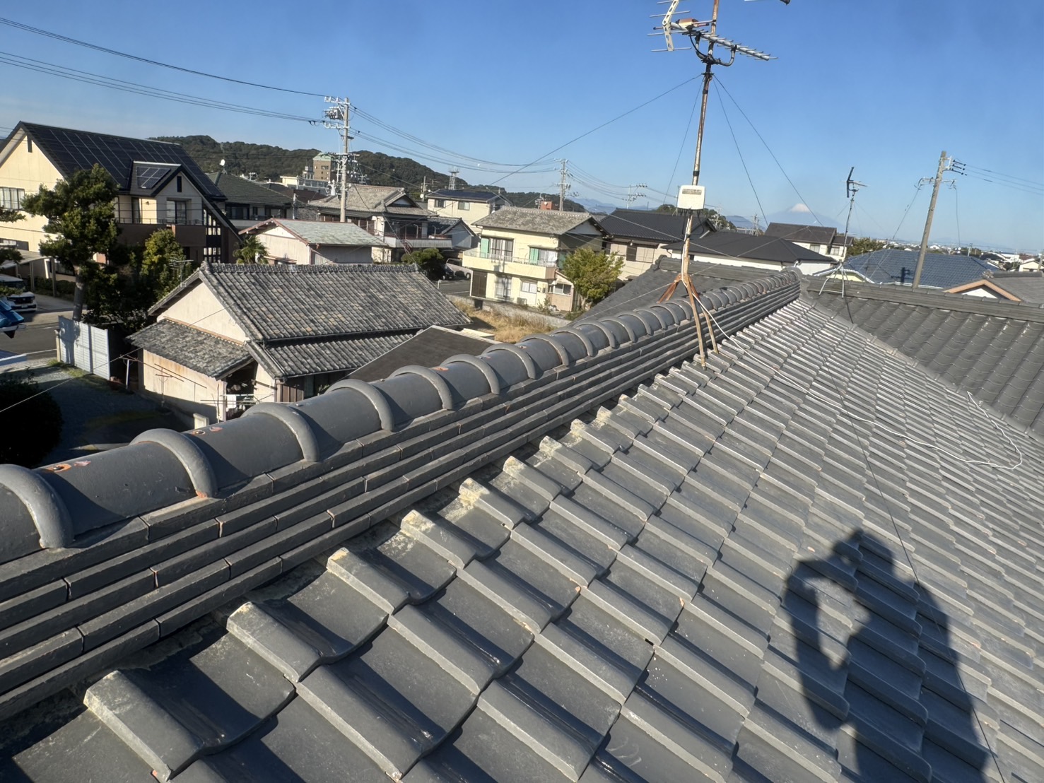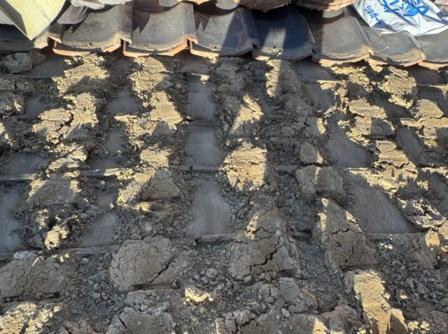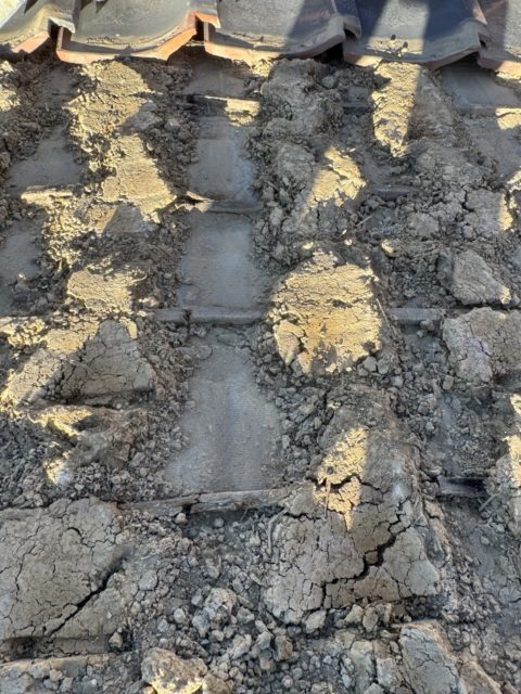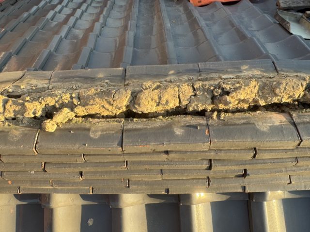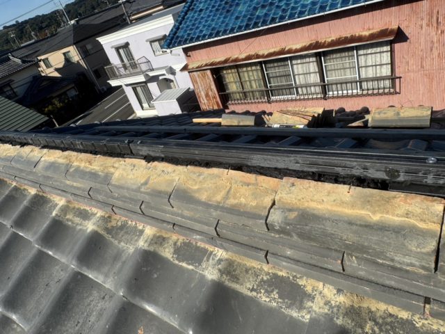 牧之原市のお客様より「屋根から雨漏りがしている」とのご相談をいただき、現地調査を行ったところ、棟の崩れと土の劣化が確認されました。