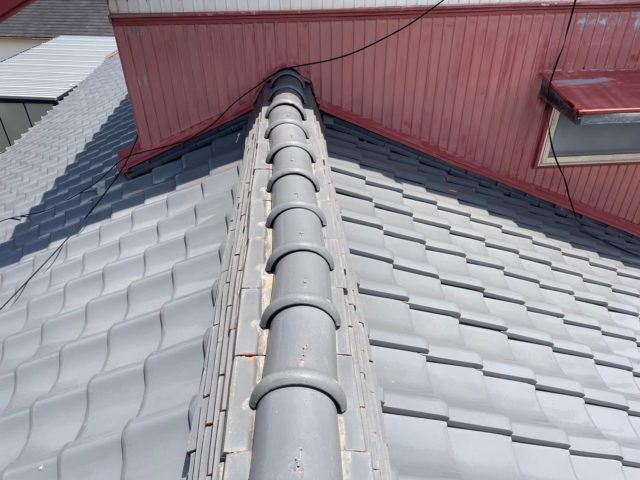 新しい棟瓦を積み直し、しっかりと固定して工事完了。