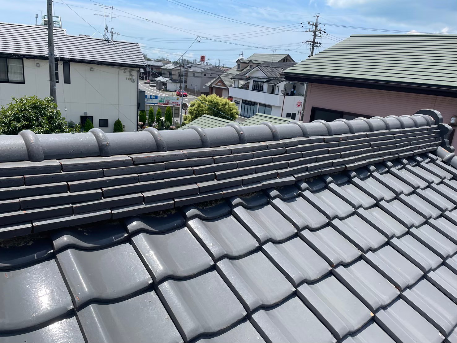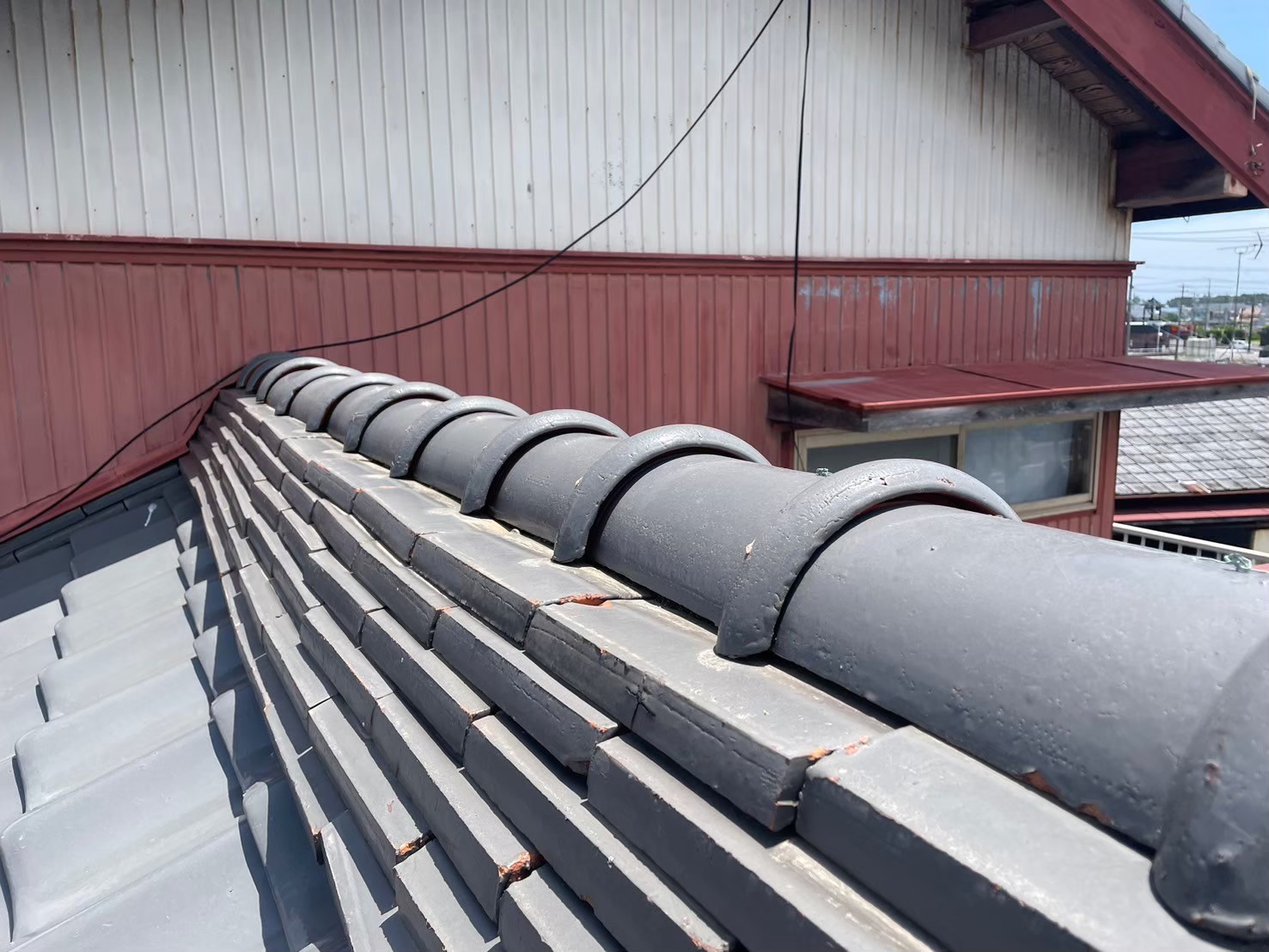 棟がズレてのし瓦が飛び出し、のし瓦の角度がありませんでした。
