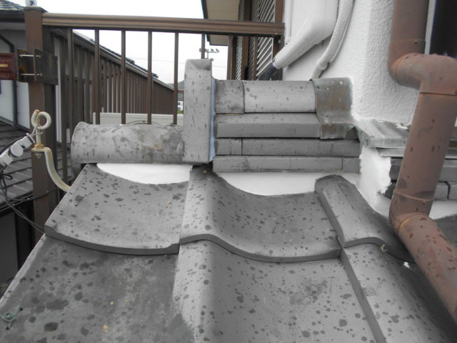 瓦屋根の棟(むね)部分や取り合い部の漆喰が剥がれていたため、雨漏りなどの被害を防ぐためにも、早めの補修が必要な状態でした。