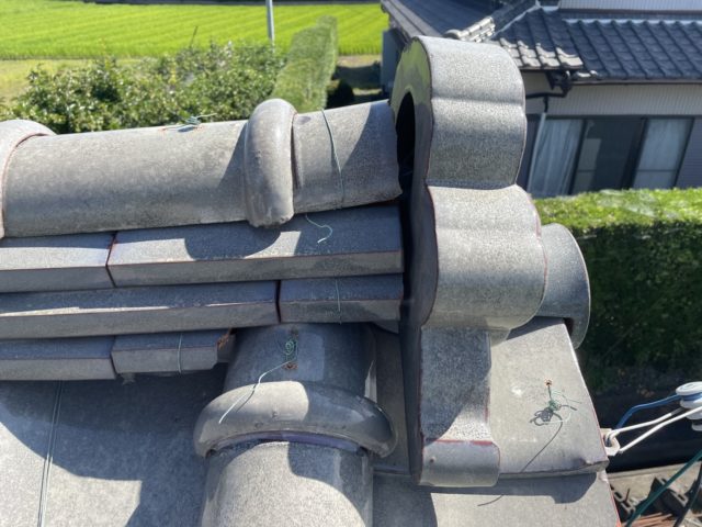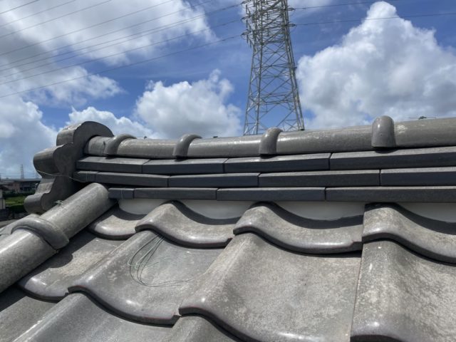 棟瓦の下の面戸が劣化して、一部は欠けて土が見えている箇所もありました。