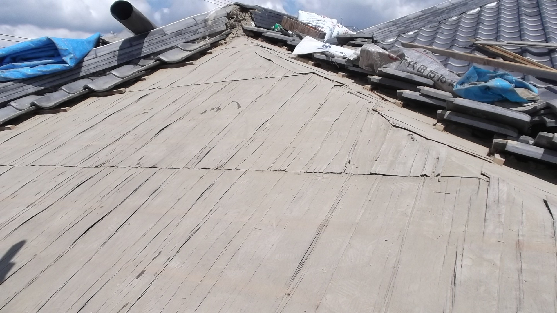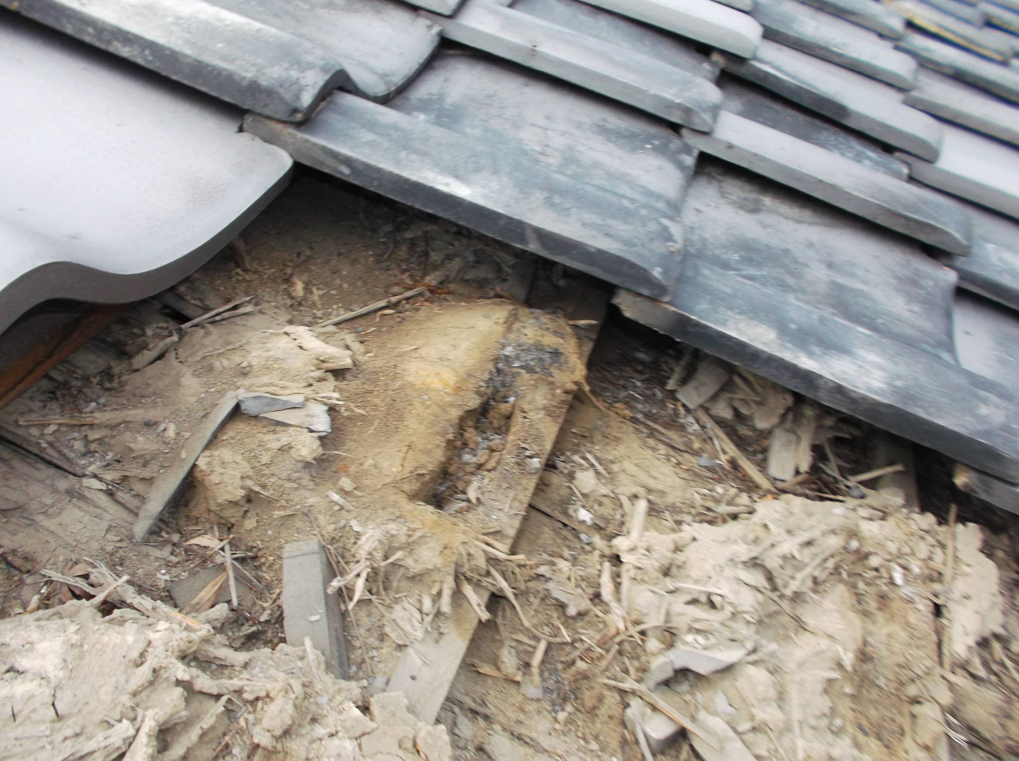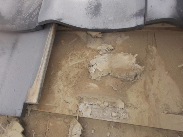 写真でも分かるように、古い土やモルタルを撤去したことで、屋根全体が軽量化され、耐震性の面でも安心できる状態になりました。