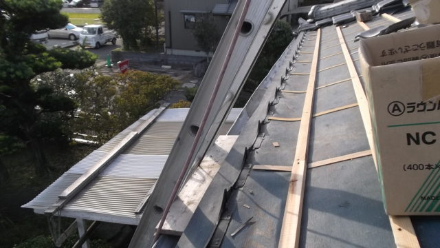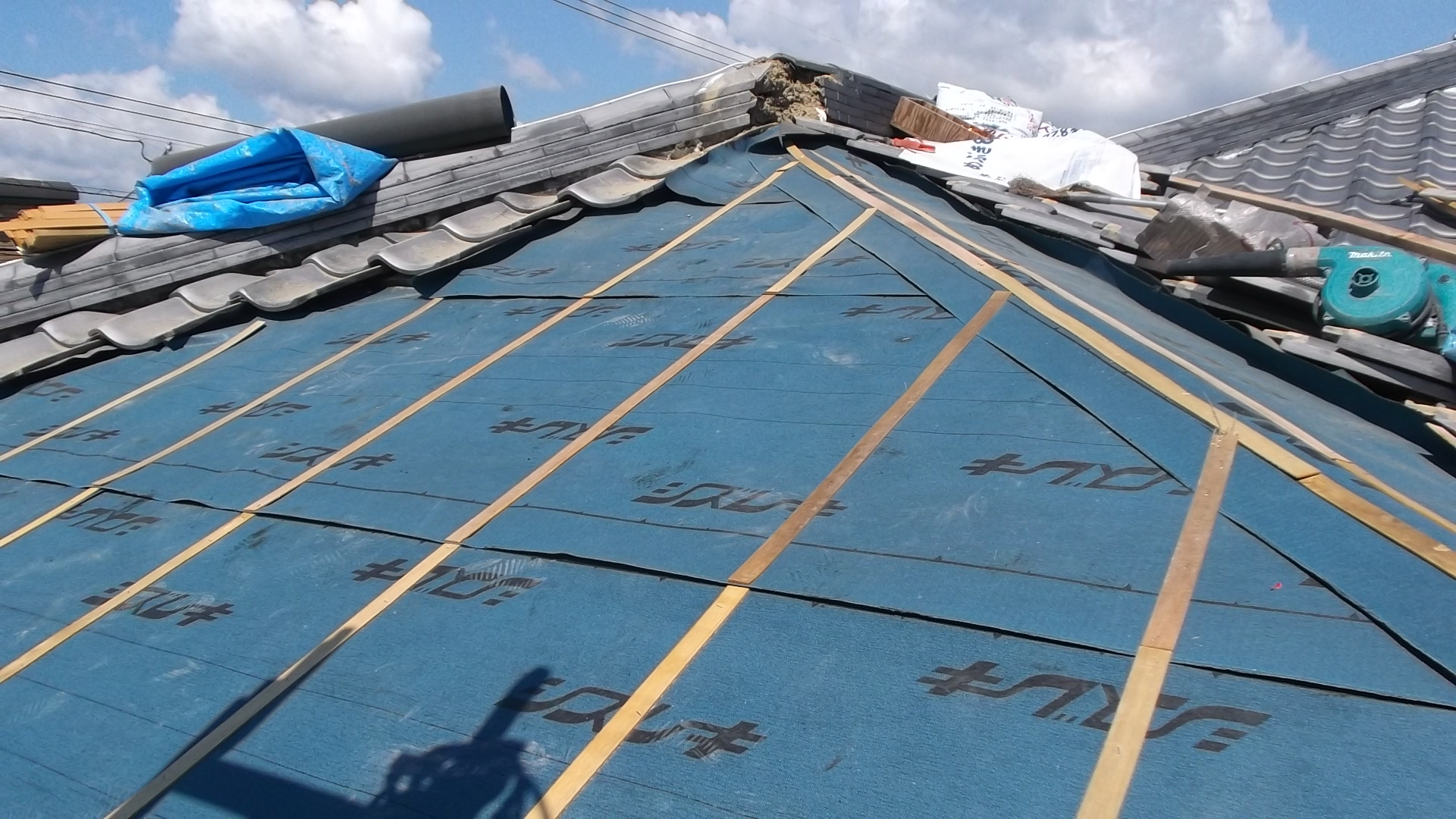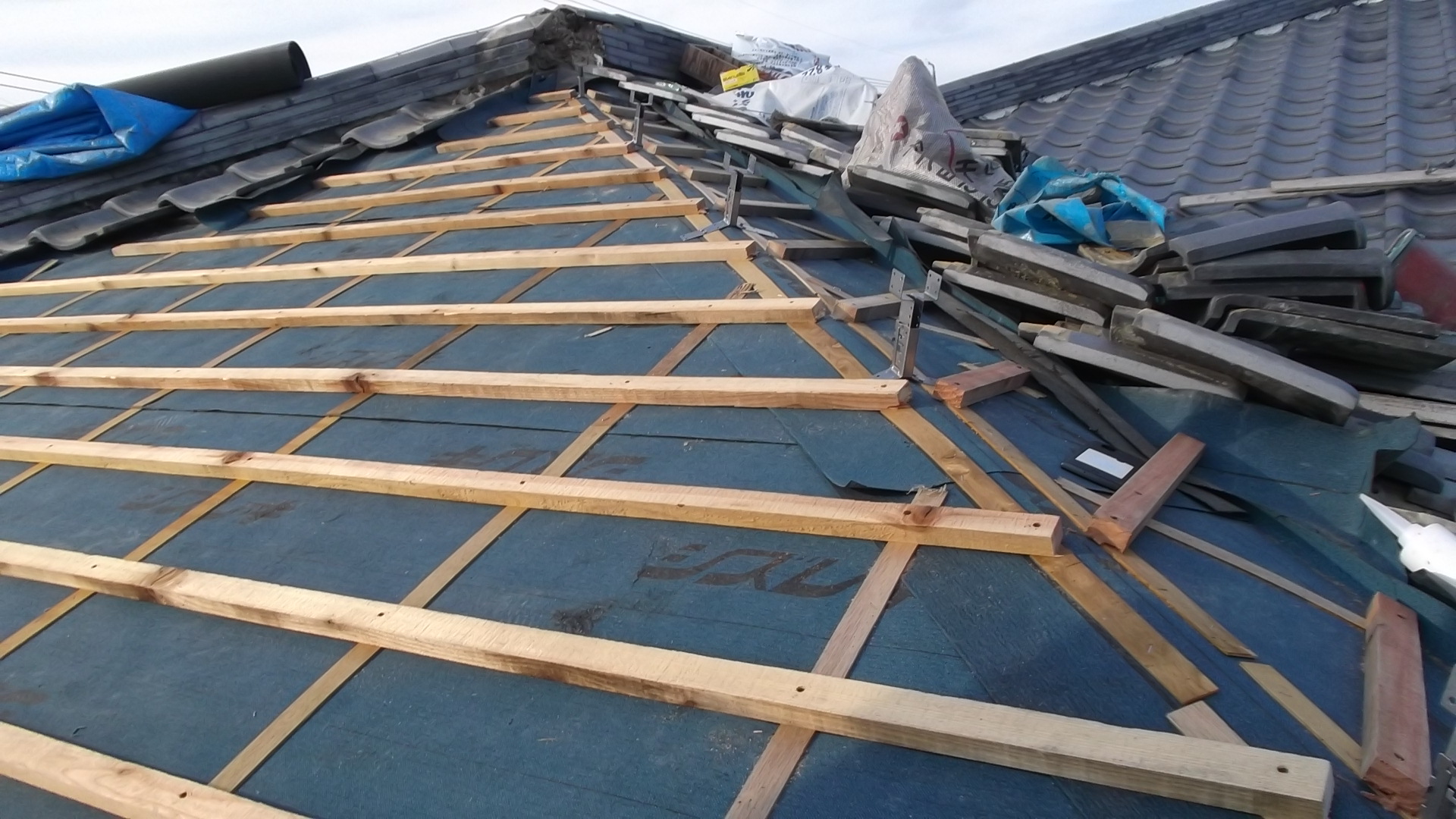 - その後、防水シート(ルーフィング)を新設し、桟木を打ち直して再度瓦を施工。