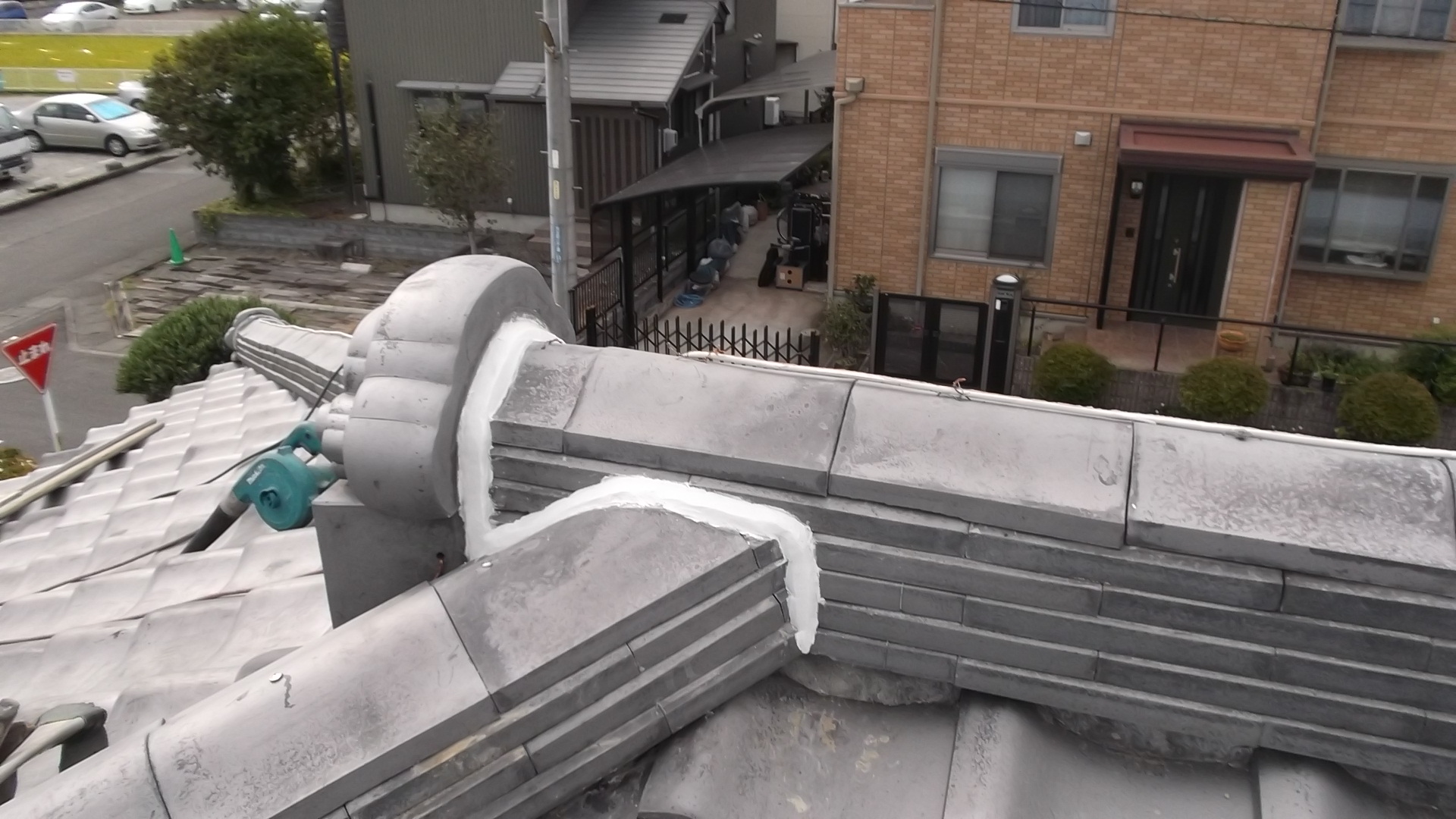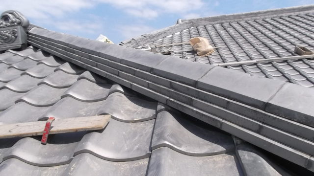 - 最後に棟部を積み直し、雨水が確実に排水できる構造に改善しました。