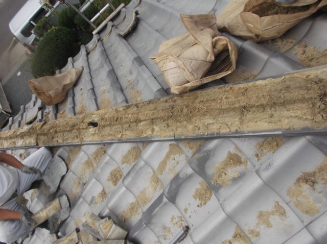 - 棟瓦と下地の土を一度解体し、内部の状態を確認。