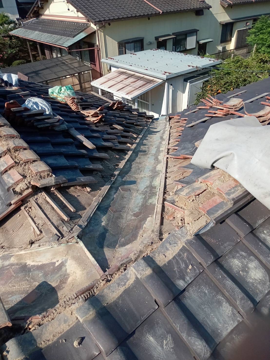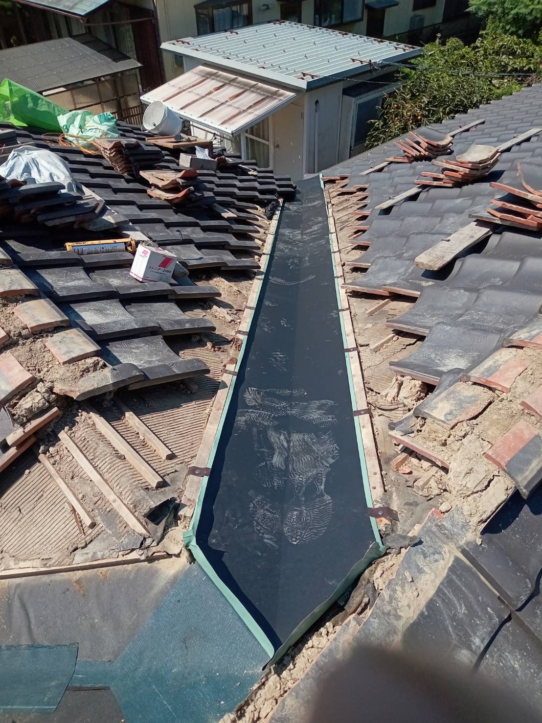 藤枝市 雨漏り修理工事 ~谷板金と棟瓦の取り直し~
