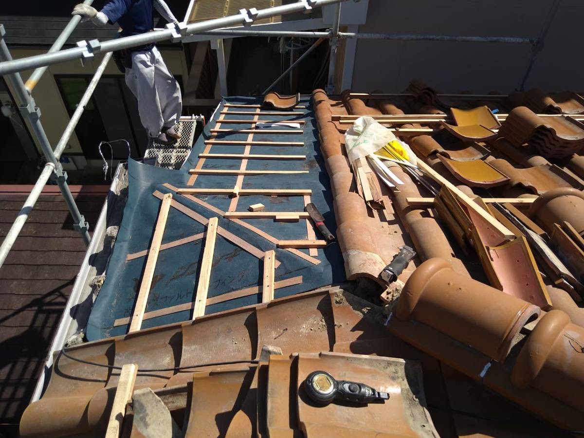 既存の瓦を一度外し、状態を確認。再利用できる瓦は保管し、割れや傷みのあるものは交換しました。