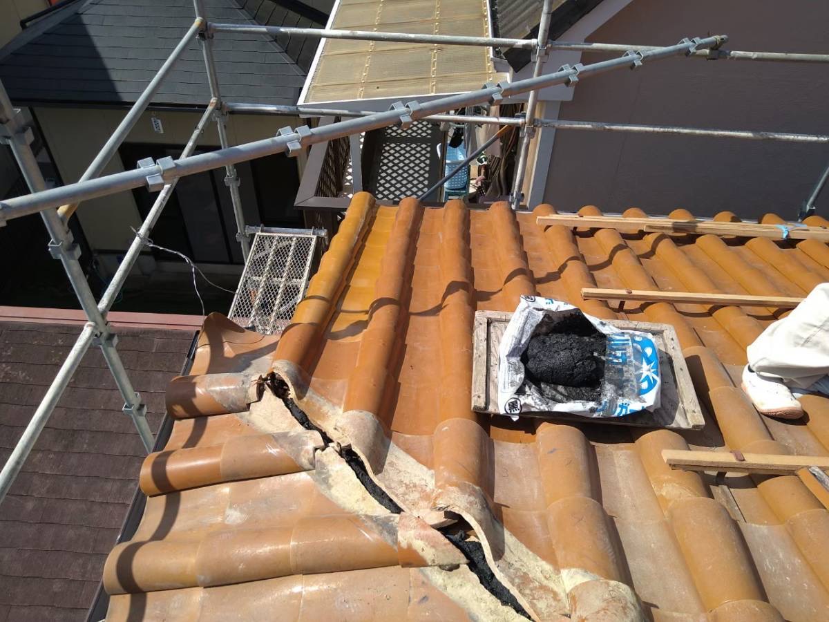 瓦屋根の棟部分や下地に劣化が見られ、内部に雨水が浸入していました。放置すれば室内への被害が広がる可能性があるため、早急に工事を実施しました。