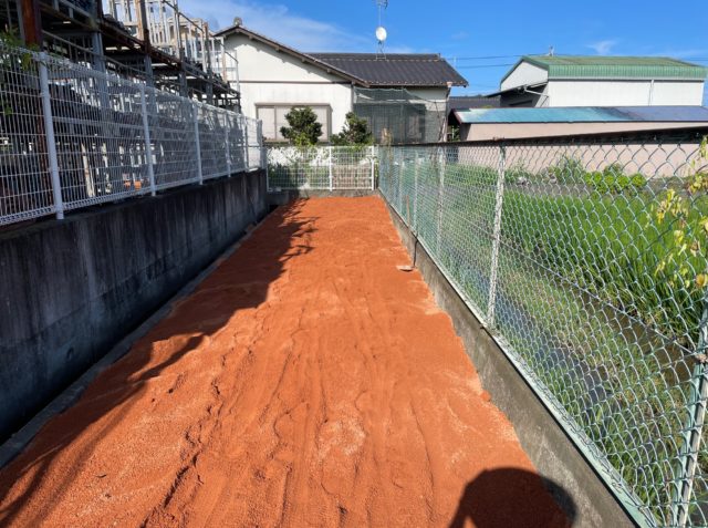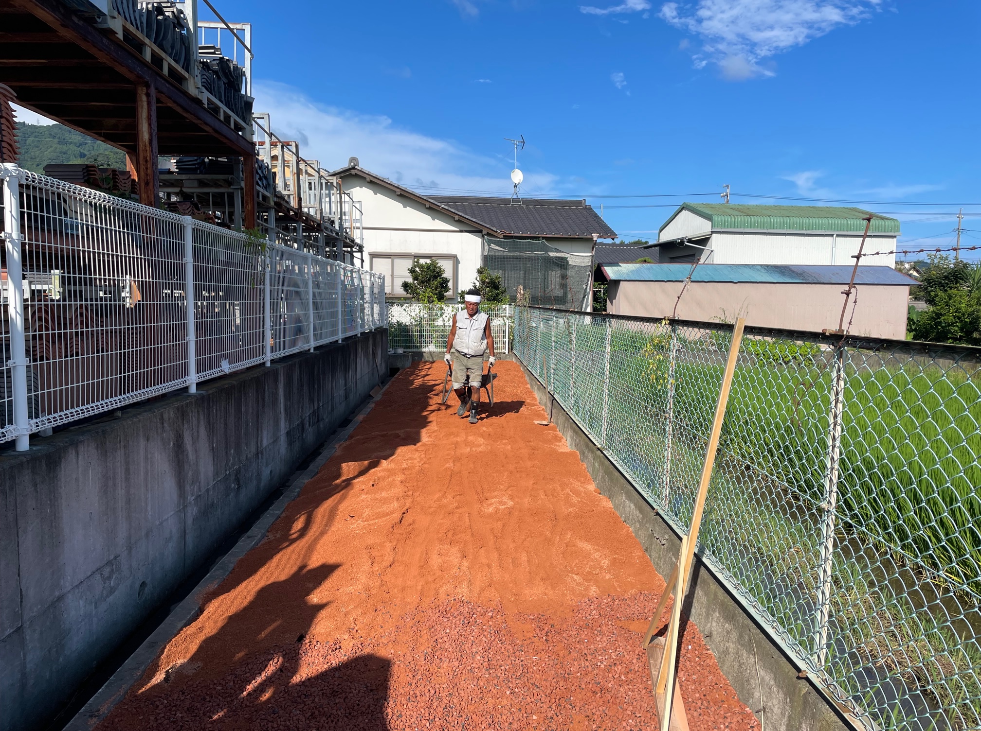 今回はその問題解決の秘策として瓦チップ(テコラ)を敷く事を決めました。