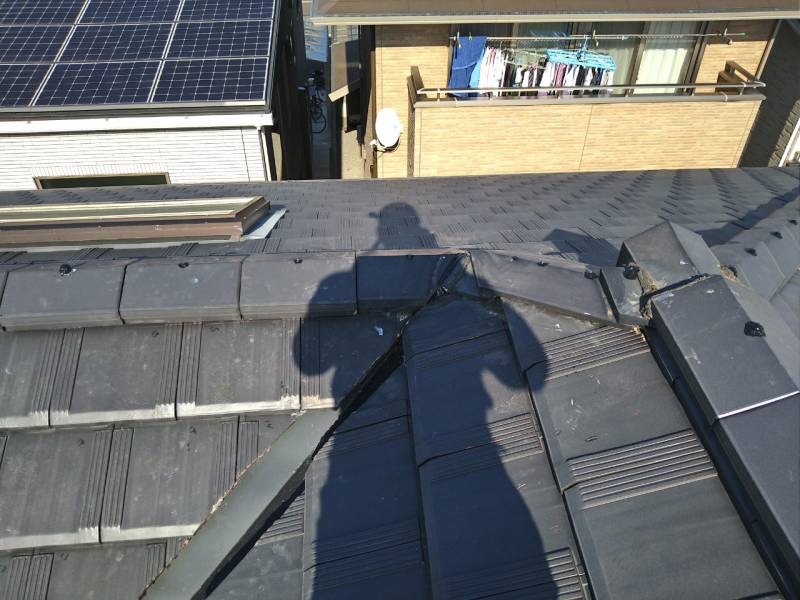 新しい谷板金の上に、取り外した瓦を再び施工しました。瓦のかみ合わせや固定ビスの位置を調整し、強風や豪雨でもずれたり浮いたりしないよう確実に固定。見た目も工事前と変わらず、美しく仕上がっています。
