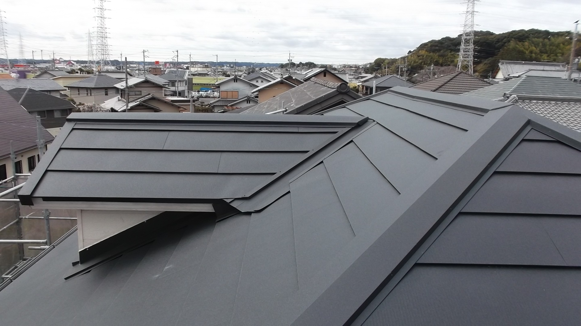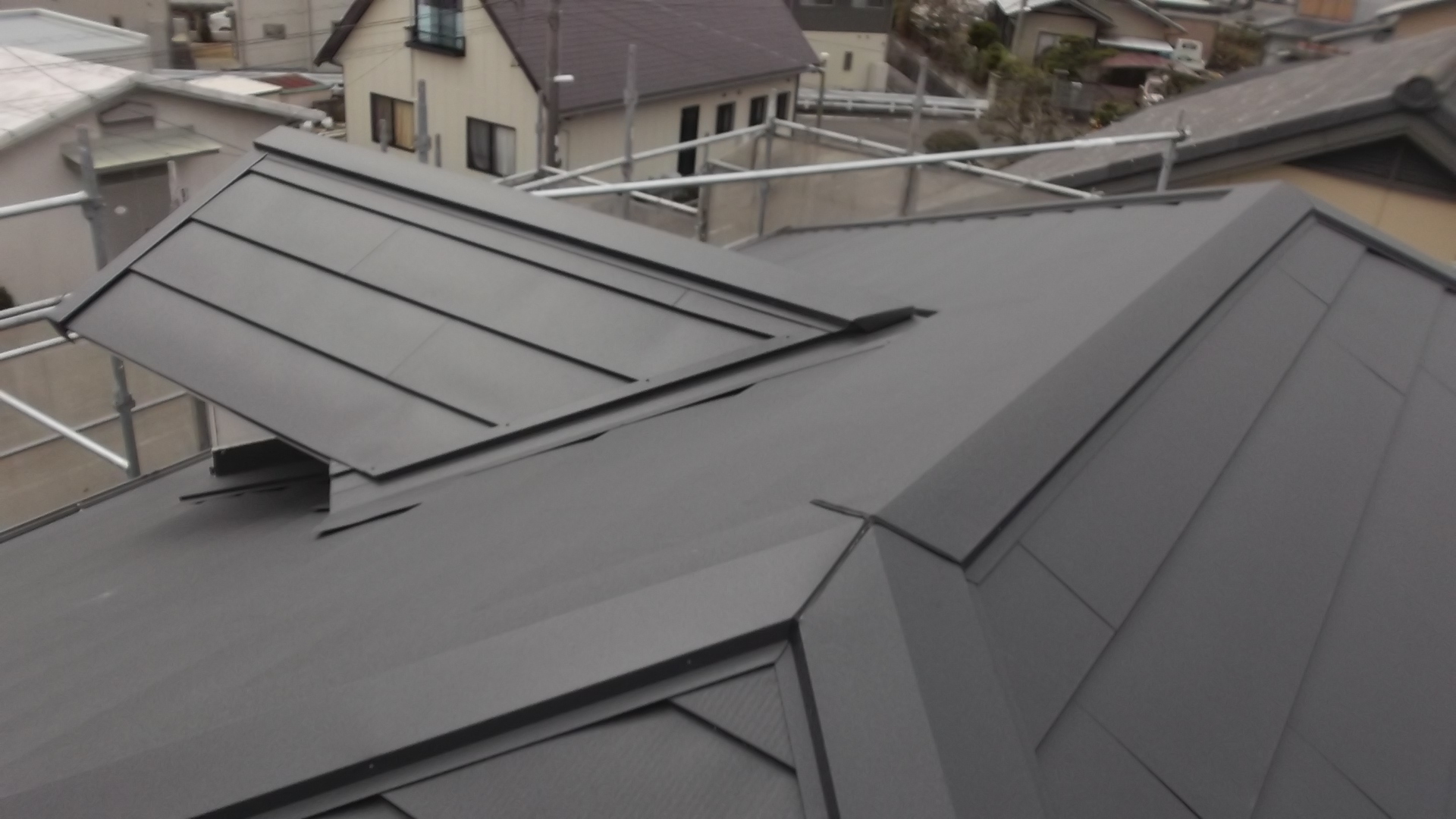 施工後は黒色のシルキーG2が美しく仕上がり、建物全体が引き締まった印象になりました。見た目だけでなく、これから先も長く安心して住んでいただける屋根になっています。