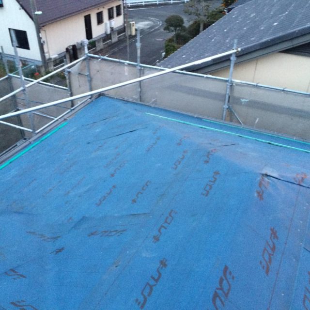 既存の瓦や下地を撤去した後、新しいルーフィングを丁寧に張り直しました。使用したのは耐久性の高い防水シートで、将来の雨漏りリスクを大きく軽減できます。ルーフィングは屋根工事において最も重要な部分であり、目に見えない箇所だからこそしっかり施工することが必要です。
